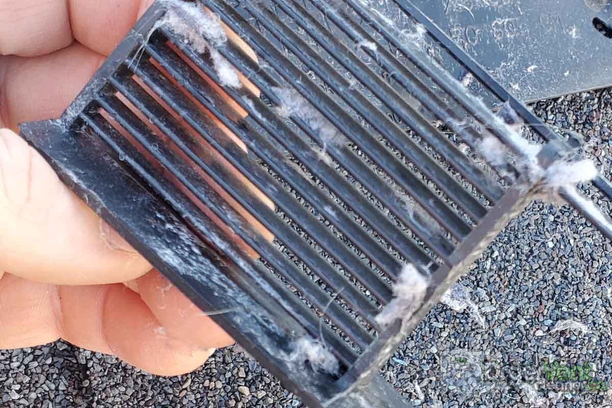 Over time the lint forms a thick blanket across the screen, preventing airflow and stopping the internal flap from opening properly. Ironically, many of these roof vents actually have a label on them stating: